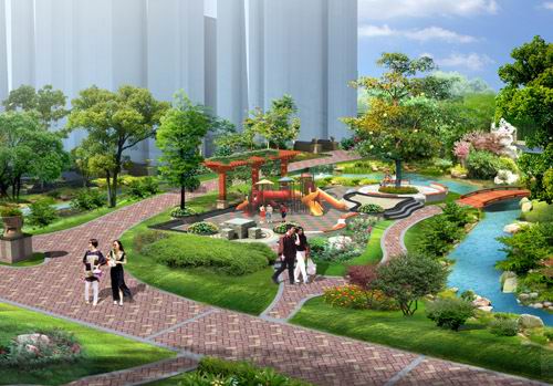 “人与自然”也是景观中一个突出的特色要素,本设计力求创造出一个真正适合人居的生活环境,花树若即若离,植物郁郁葱 葱,将居民的日常生活融入有机的生态环境,为住户提供了一处全新的休闲生活体验和现代生活概念。