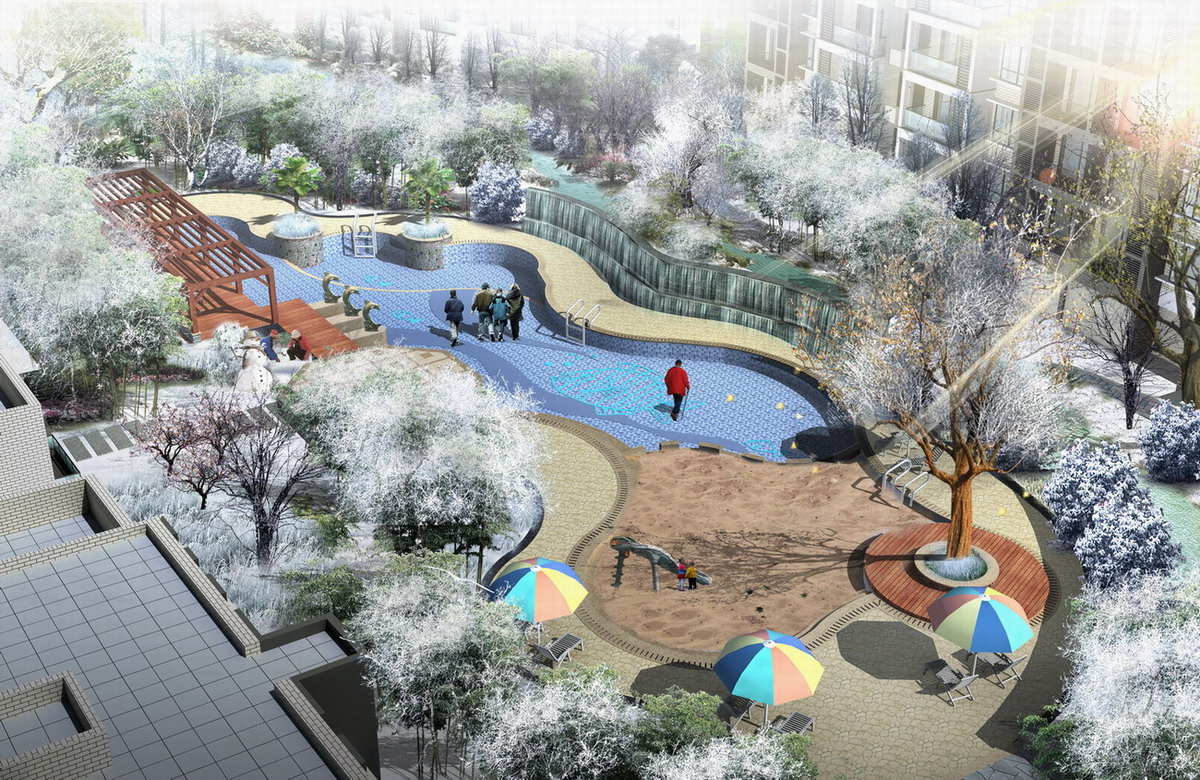 (2)景观的多样性:以绿地、自然、阳光的人居环境为主题,对小区的中心绿地各组团进行统一规划设计,以达到充分整合环境资源,提升小区环境品质的目的。植物配置遵循适地适树的原则,并充分考虑与建筑风格的吻合,兼顾多样性和季节性,进行多层次、多品种搭配,分别组合成特色各异的群落。